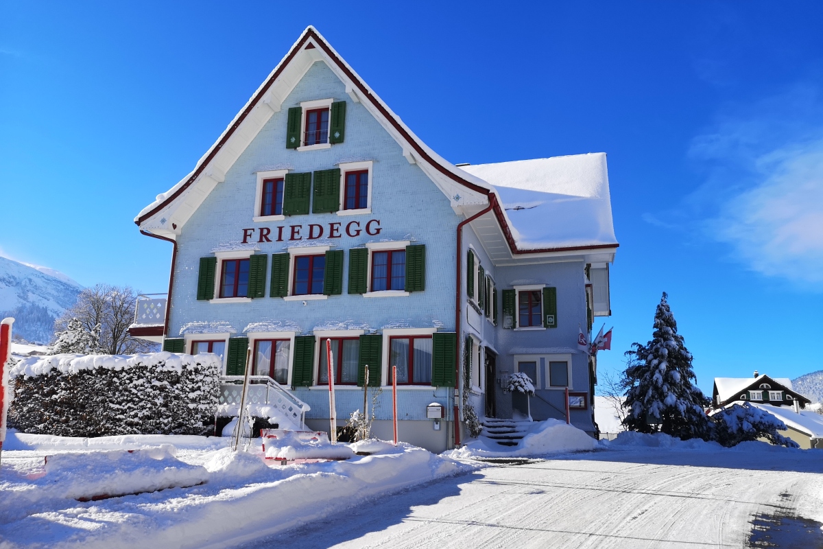 Die Atmosphäre in der Friedegg ist ungezwungen, stilvoll und persönlich. Die naturnahe und zentrale Lage bietet sich optimal an für Ausflüge aller Art, sei es zu Fuss, mit dem Bike oder auf den Skiern. Aber auch wer es gerne ruhig angeht, kommt auf seine Kosten. So lädt unsere gemütliche Lesestube im Parterre mit kleiner, feiner Bibliothek zum Abschalten und Herunterfahren ein.