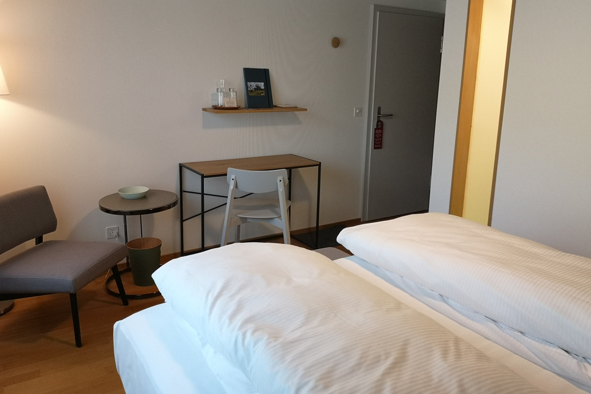 Auf TV-Geräte in den Zimmern verzichten wir in der Friedegg bewusst. Zwinglistube und Bibliothek im Parterre sowie die kleine Lounge mit einem TV im ersten OG laden ein, sich zurückzuziehen oder sich mit anderen Gästen auszutauschen.