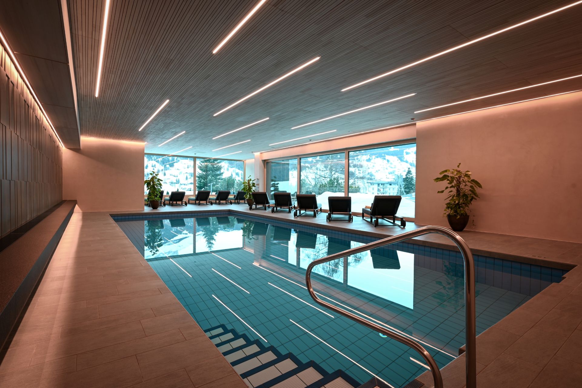 25 à 28 m² chacune avec lits jumeaux, bain/douche, WC séparés, TV satellite HD, téléphone, radio, coffre-fort, minibar, machine Nespresso et bouilloire. Terrasse ou balcon avec vue sur l'Eiger (sud).Équipements de chambre